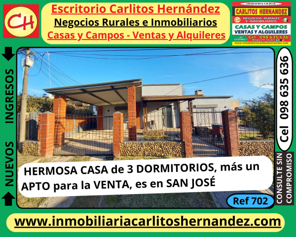 Y POR ESO, ES QUE LOS INVITAMOS A QUE NOS VISITEN POR NUESTRA INMOBILIARIA, Y CON MUCHO GUSTO LOS ATENDEREMOS PERSONALMENTE!! PARA INTERIORIZARLOS DE NUESTRA MUY AMPLIA CARTERA DE PROPIEDADES URBANAS Y RURALES