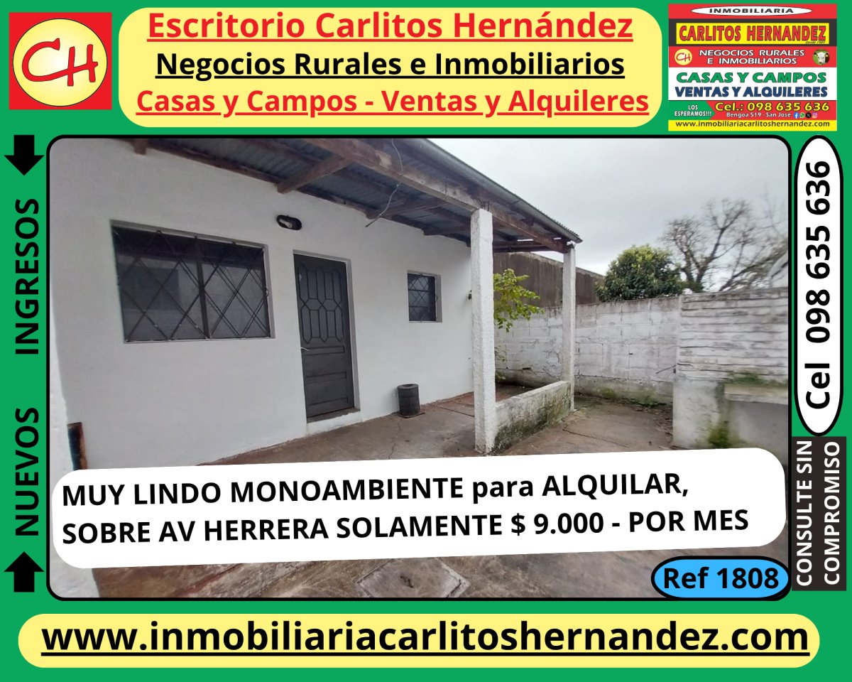 Ref 1808) A - 🏠🏠 MUY LINDO MONOAMBIENTE sobre AV HERRERA para ALQUILAR, 💲 💲 es en SAN JOSÉ 👈 👈