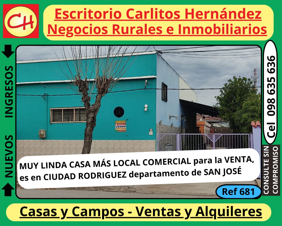 Ref 681) V - 🏠 🏠 MUY LINDA CASA MÁS LOCAL COMERCIAL para la VENTA 💲 💲 es en CIUDAD RODRIGUEZ departamento de SAN JOSÉ 👈 👈