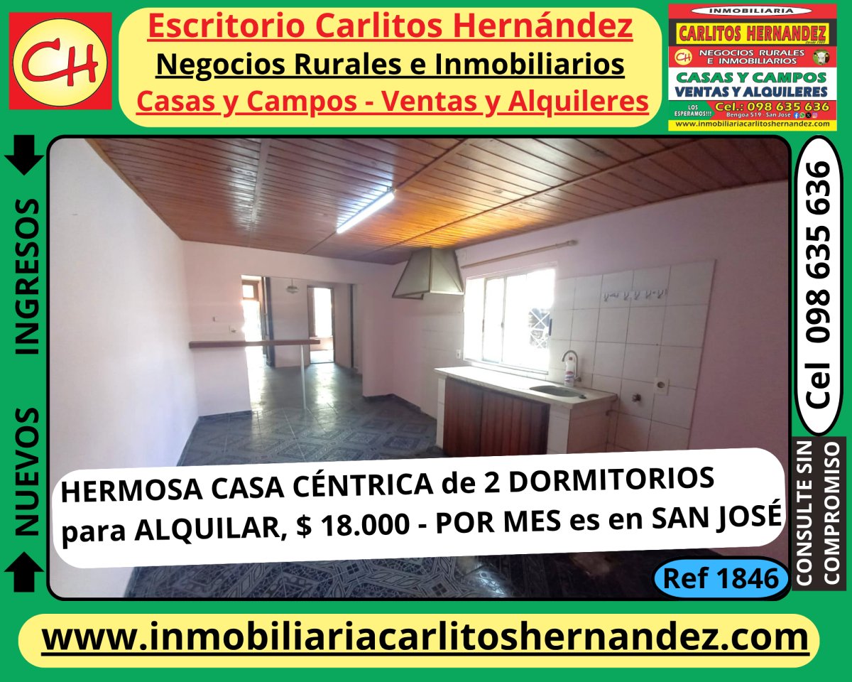Ref 1846) A - 🏘🏘 HERMOSA CASA CÉNTRICA de 2 DORMITORIOS 🛏 🛏 para ALQUILAR, 💲 💲 es en SAN JOSÉ 👈👈