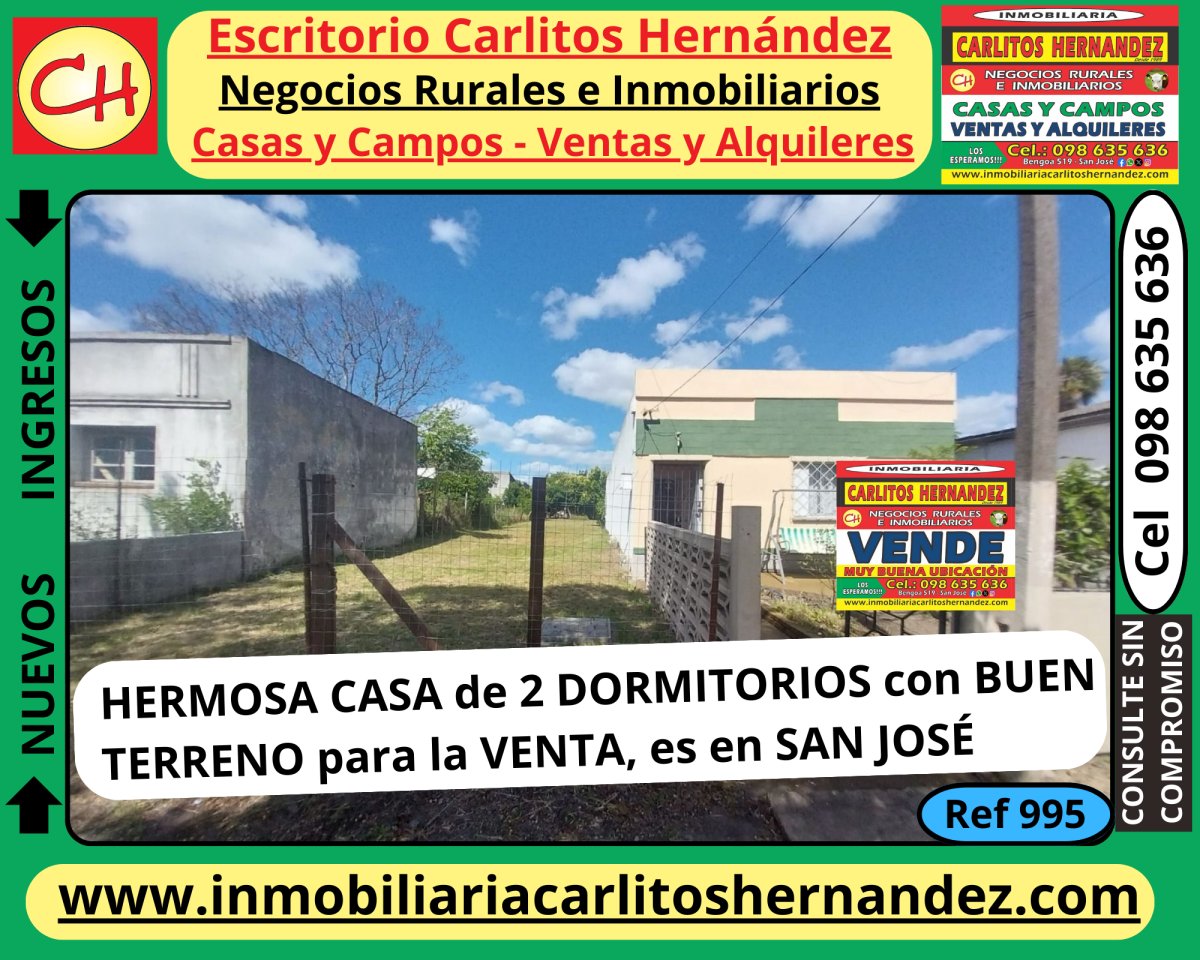 Ref 995) V - 🏘 🏘 LINDA CASA DE 2 DORMITORIOS 🛏 🛏 CON AMPLIO TERRENO PARA LA VENTA 💲 💲 A POCOS METROS DE AVENIDA HERRERA EN SAN JOSÉ 👈👈