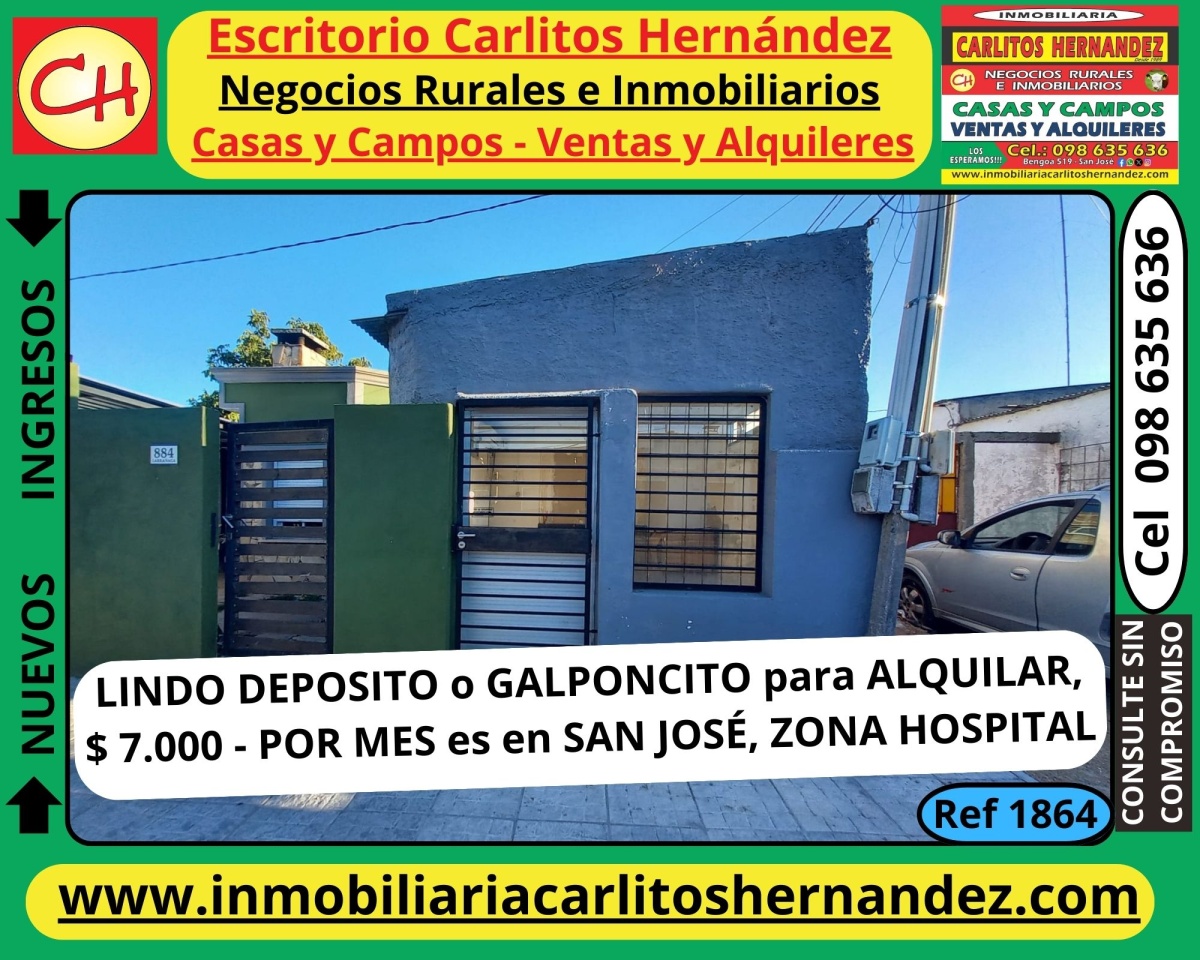 Ref 1864) A - 🏠🏠 LINDO DEPOSITO o GALPONCITO para ALQUILAR 💲 💲 , es en ZONA HOSPITAL en SAN JOSÉ 👈👈