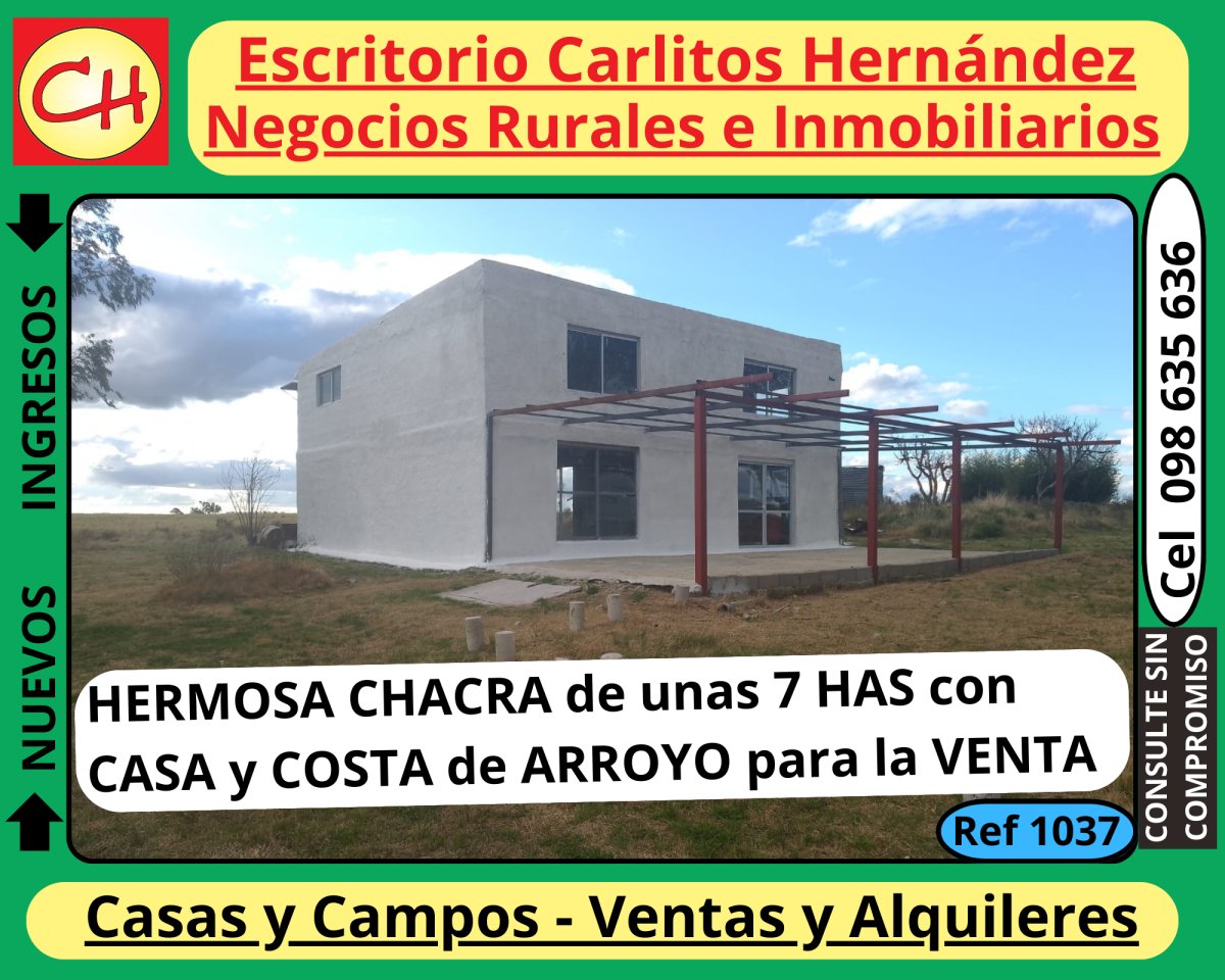 Ref 1037) V - 🌳🌳 HERMOSA CHACRA de unas 7 HAS con MUY LINDA CASA 🏘🏘 y COSTA de ARROYO 💧💧 para la VENTA, 💲 💲 con POSIBILIDADES de FINANCIACIÓN, 💲 💲 es en SAN JOSÉ 👈 👈