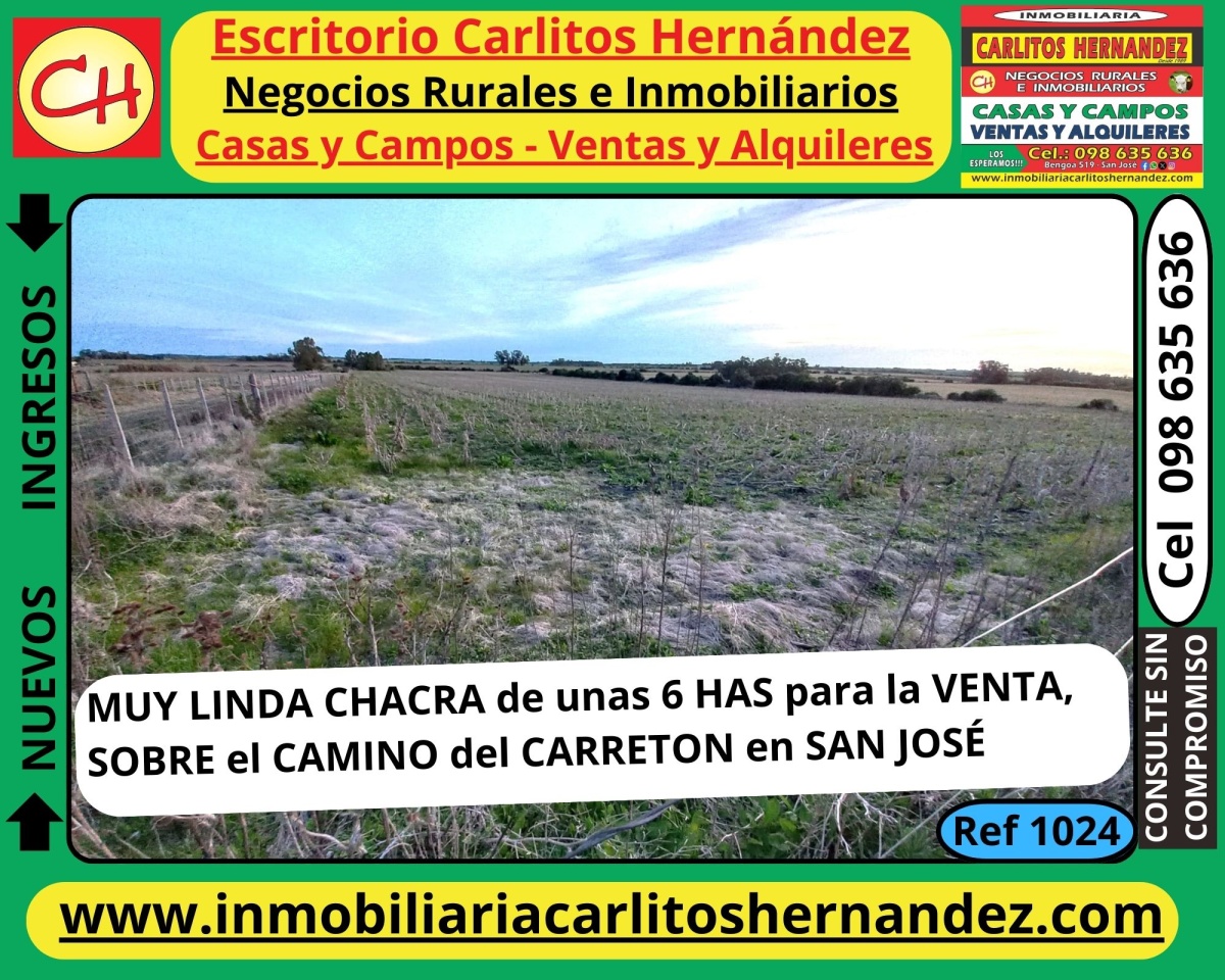 Ref 1024) V - ‼️ ‼️ EXCELENTE OPORTUNIDAD ‼️ ‼️ 🌲🌲 CHACRA DE UNAS 6 HECTÁREAS EN ZONA DEL CAMINO DEL CARRETON PARA LA VENTA, 💲 💲 ES EN SAN JOSÉ 👈👈